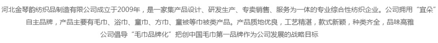 河北金琴韻紡織品制造有限公司經過多年積累形成了毛巾禮品策劃、創意設計、包裝制作為一體的專業服務性毛巾禮品運營機構。公司成立以來一直與國內知名禮品公司緊密合作,建立了戰略合作伙伴關系。